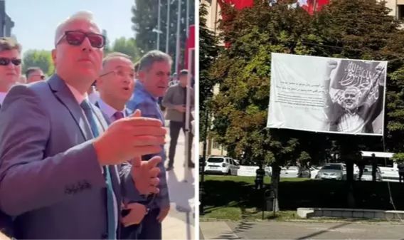 Gaziantep'te HÜDA-PAR'lı olduğu iddia edilen bir grup, 30 Ağustos Zafer Bayramı kutlamalarının yapılacağı Demokrasi Meydanı alanına İsmail Haniye pankartlarını astı.