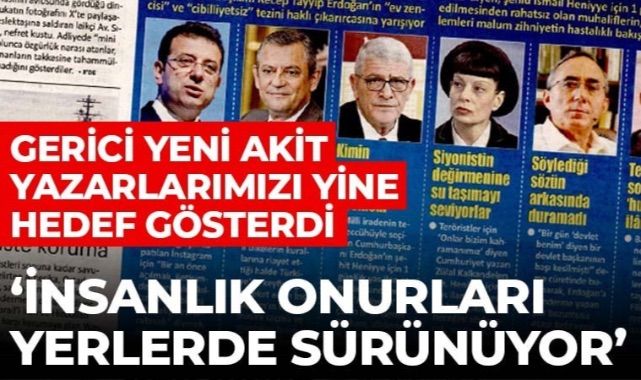 Gerici Yeni Akit yazarlarımızı yine hedef gösterdi: 'İnsanlık onurları yerlerde sürünüyor'