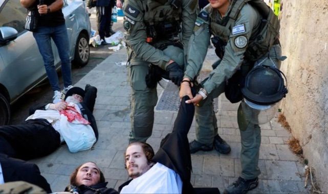 Ultra Ortodoks Yahudiler, Batı Kudüs'te İsrail'deki zorunluk askerlik hizmetini protesto etti. Polisin zaman zaman sert müdahalede bulunduğu o anlar, kameralar tarafından saniye saniye kaydedildi. Batı Kudüs'te Ultra 'Harediler' olarak bilinen Ortodoks Yahudiler, İsrail'in zorunlu askerlik hizmetine karşı geniş katılımlı bir protesto gerçekleştirdi. Protestocular, zorunlu askerliğe karşı tepkilerini güçlü bir şekilde dile getirirken İsrail polisi göstericilere sert müdahalede bulundu.